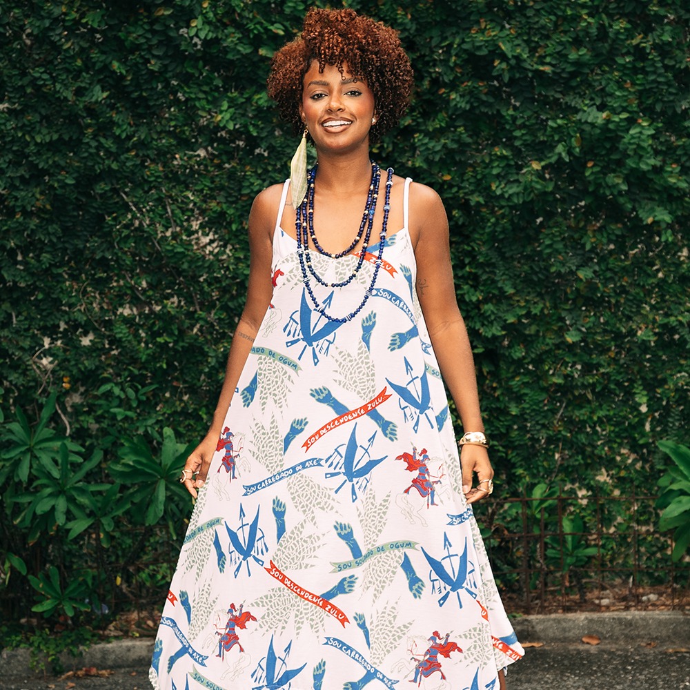 O Vestido Firmo o Ponto é uma peça que marca território. Com caimento leve e movimento marcante, ele traduz atitude, identidade e conexão espiritual.